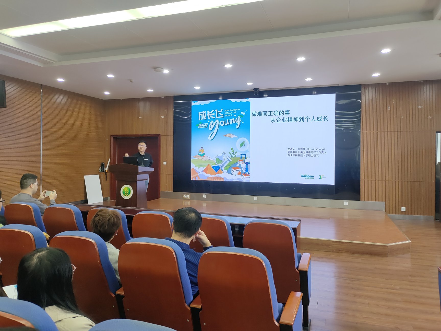 为帮助学生明晰职业发展方向,提升就业竞争力,六合论坛 于10月17日在理科楼E602报告厅成功举办“就业大讲堂”系列活动。本期活动特邀山东潍坊润丰化工股份有限公司北美区域B2B业务负责人、西北农林科技大学校友张德强担任主讲嘉宾,以“做难而正确的事——从企业精神到个人成长”为主题,为现场学子带来一场内容丰富、启迪深刻的分享。