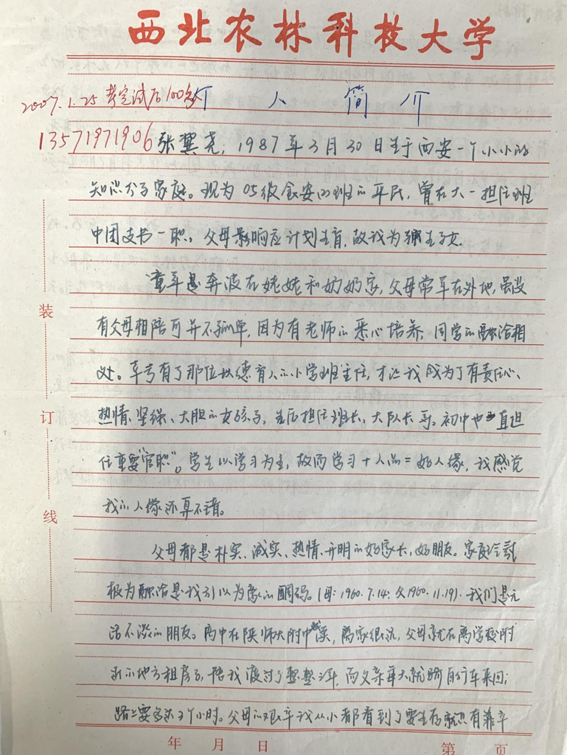 附件1:学生的“个人简介”(该生期末考试取得满分100分的好成绩)