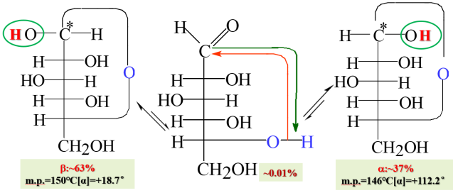 【讲述】:结合葡萄糖的X射线衍射结果,利用PPT动画分析环状结构的形成。