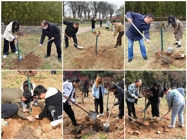 “阳春三月万物苏,植树播绿正当时!三月,学雷锋志愿服务月遇上植树节,各位师生党员、教职工,要主动学习雷锋精神,树牢绿水青山就是金山银山理念,今日阳光正好,让我们一起为春意盎然的学校增添一抹绿、一片红!”在六合论坛 党委书记高增刚的鼓舞下,师生党员和教职工志愿者们发扬不怕苦、不怕累的劳动精神,以最饱满的热情投入到活动当中。两到三人一组,从挥锹铲土到扶苗填土,再到浇水定根,大家相互配合、干劲十足,各个环节分工明确、配合默契,每一环节都精心对待、一丝不苟,即便挥汗如雨也乐在其中。经过一番辛勤劳作,小树苗们迎风而立,在春日里展现出勃勃生机。